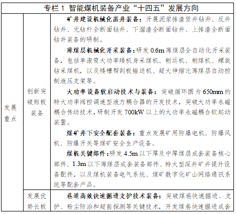 着重发展井下专用工作机器人。立足山西煤机整体技术和产业规模优势,大力发展掘进、采煤、运输、安控和救援等机器人产品;突破机器人机群协同作业控制技术,力争实现掘进全过程全方位智能化作业,走具有山西特色的差异化发展道路。