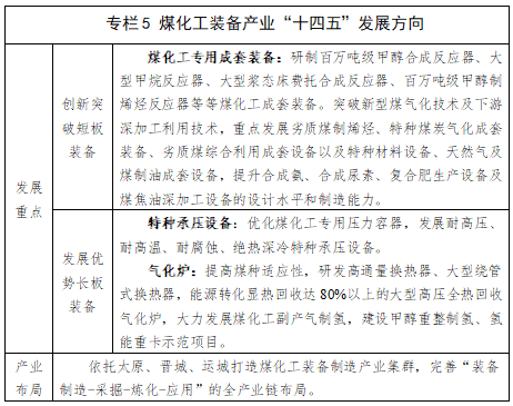 培育煤化工装备系统集成商。推进传统煤化工装备制造企业由“设备制造商向气体供应商、服务商”的转变,创新发展模式与服务业态,提升煤化工装备成套化水平,打造煤化工全产业链,积极发挥龙头企业牵引作用,完善省内煤化工装备配套产业,打造煤气化装备国际一流系统集成商。