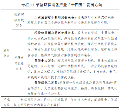 推进工业固废综合利用装备应用。加速实现工业固废由“低效、低值、分散利用”向“高效、高值、规模利用”转变,发展煤矸石回填支护装备,粉煤灰、脱硫石膏、金属冶炼渣等资源综合利用装备产业,建设朔州、长治、晋城国家级工业资源综合利用基地。