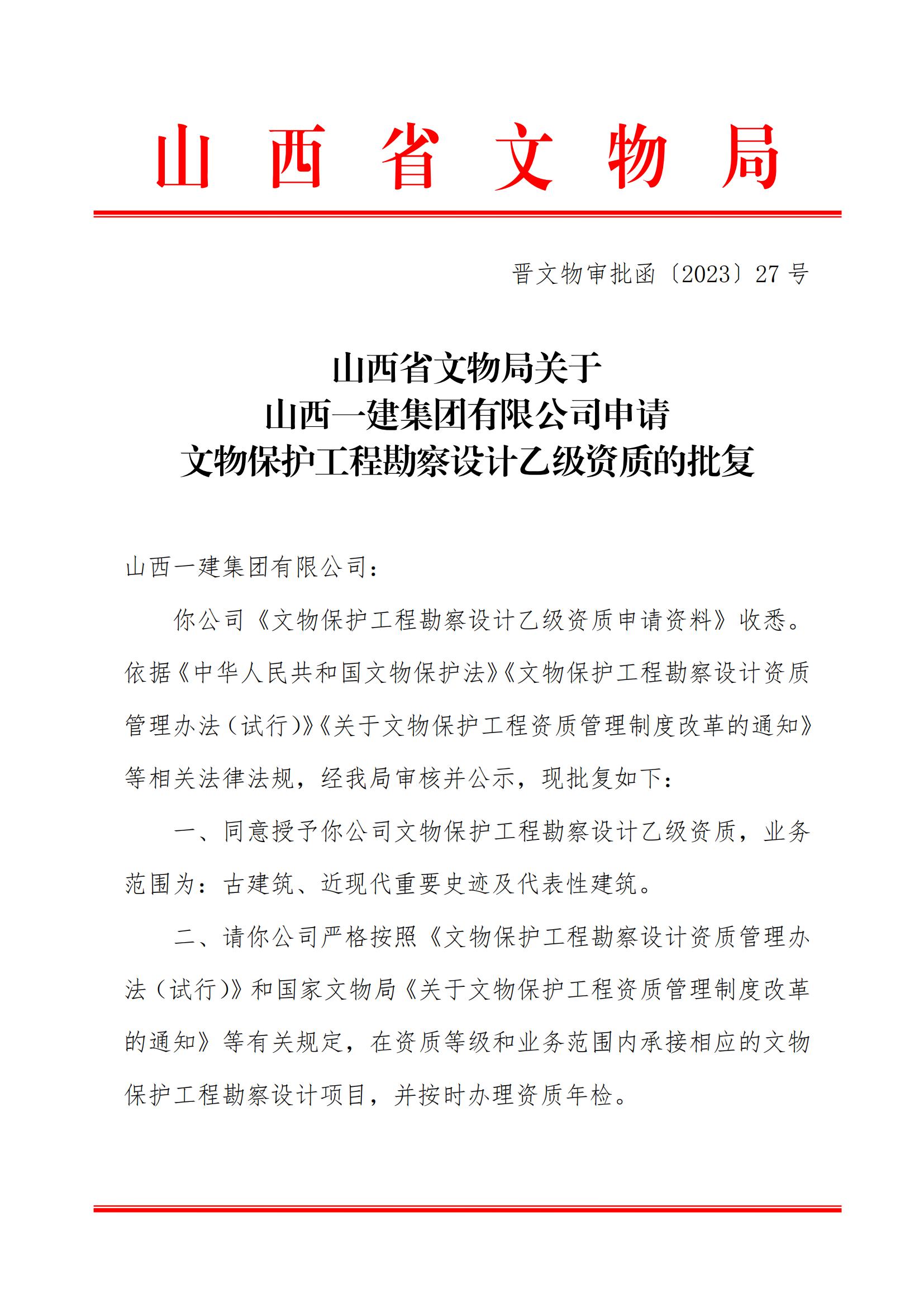 下一篇 : 365bet手机在线注册_beat365体育登陆网址_365bet提款问题文物局关于山西晋之源古建筑工程有限公司申请增加文物保护工程勘察设计乙级及施工二级资质证书业务范围的批复